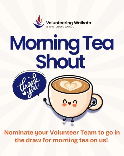 Your team will go into the draw to win a monthly Morning Tea Prize Pack, delivered by the Volunteering Waikato team